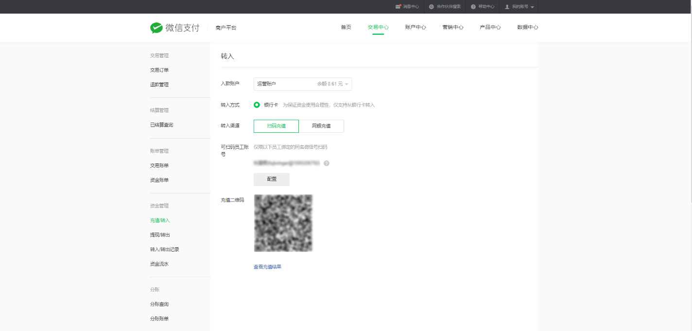 ① 当推广员申请提现的时候,需提前充值至运营账户。