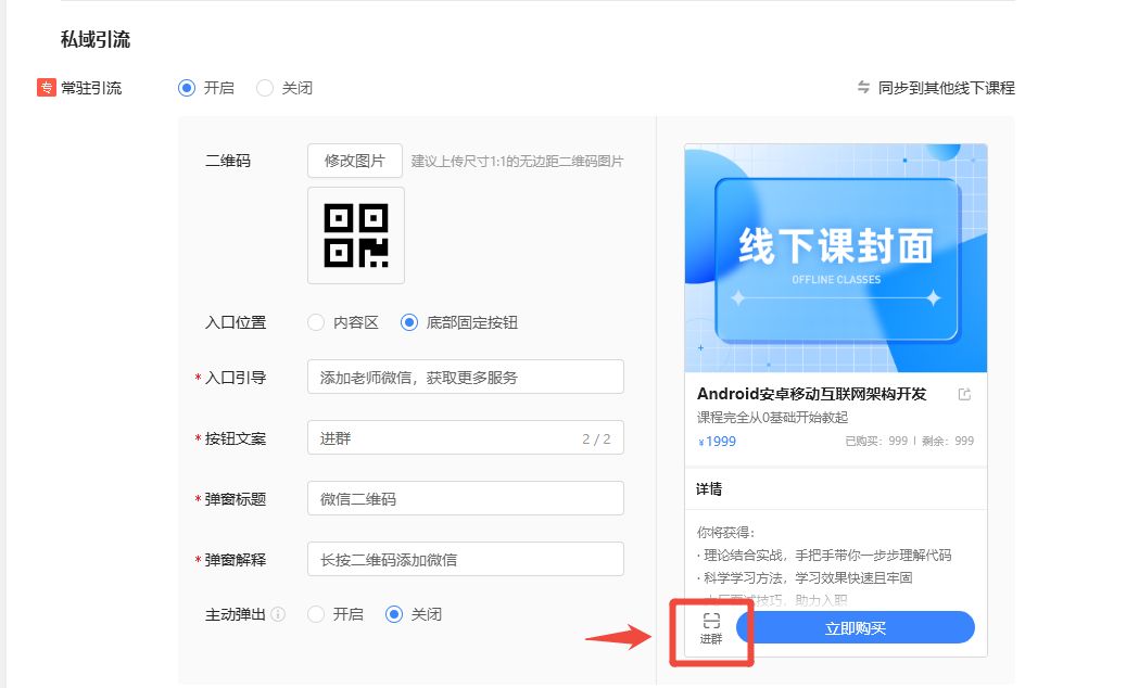 在适当时机引导学员加入私域,方便私域转化、客服咨询及课程服务