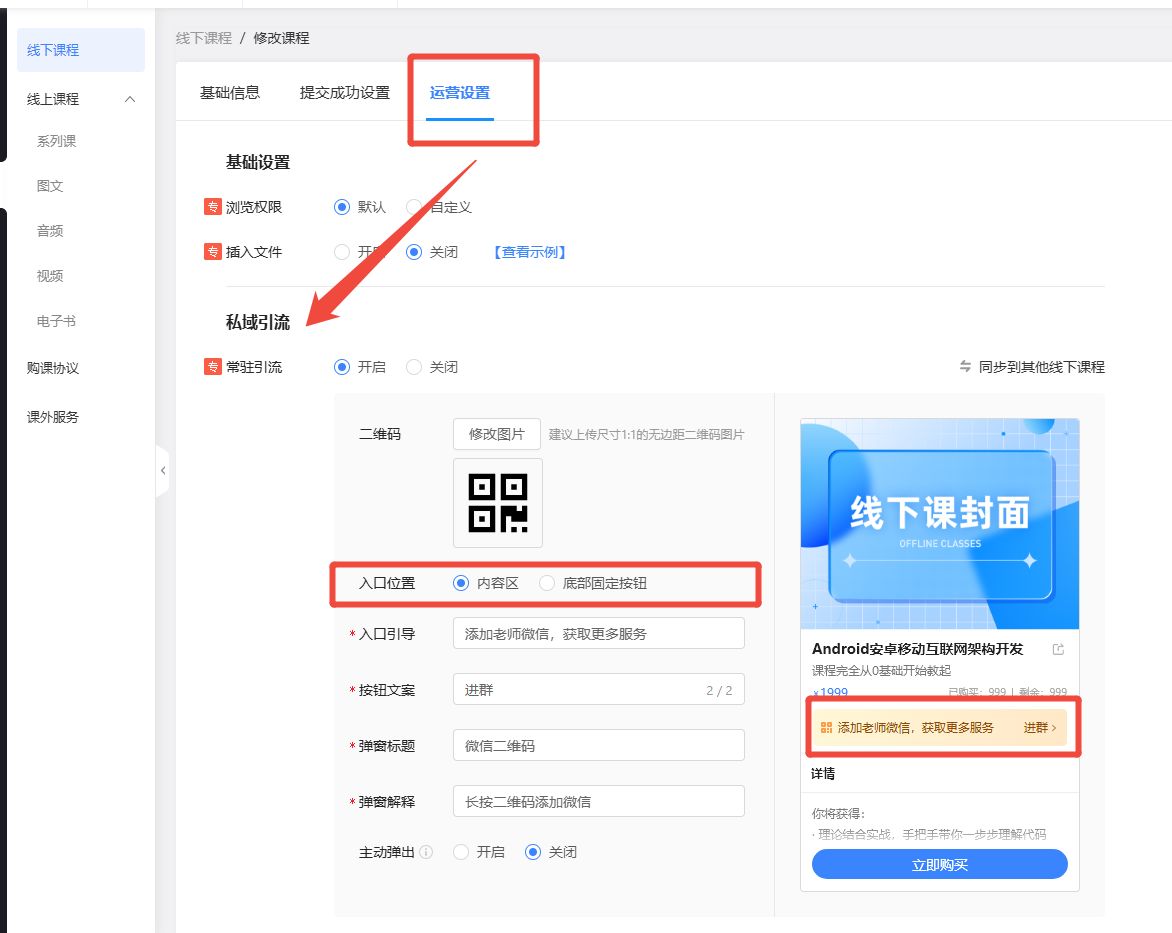 【私域】线下课程、课外k8凯发官网入口的服务支持私域引流