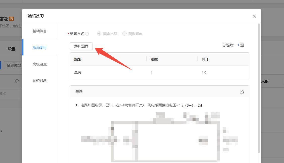 二、【答题】练习型答题,固定出题,已有答题记录,支持继续添加题目