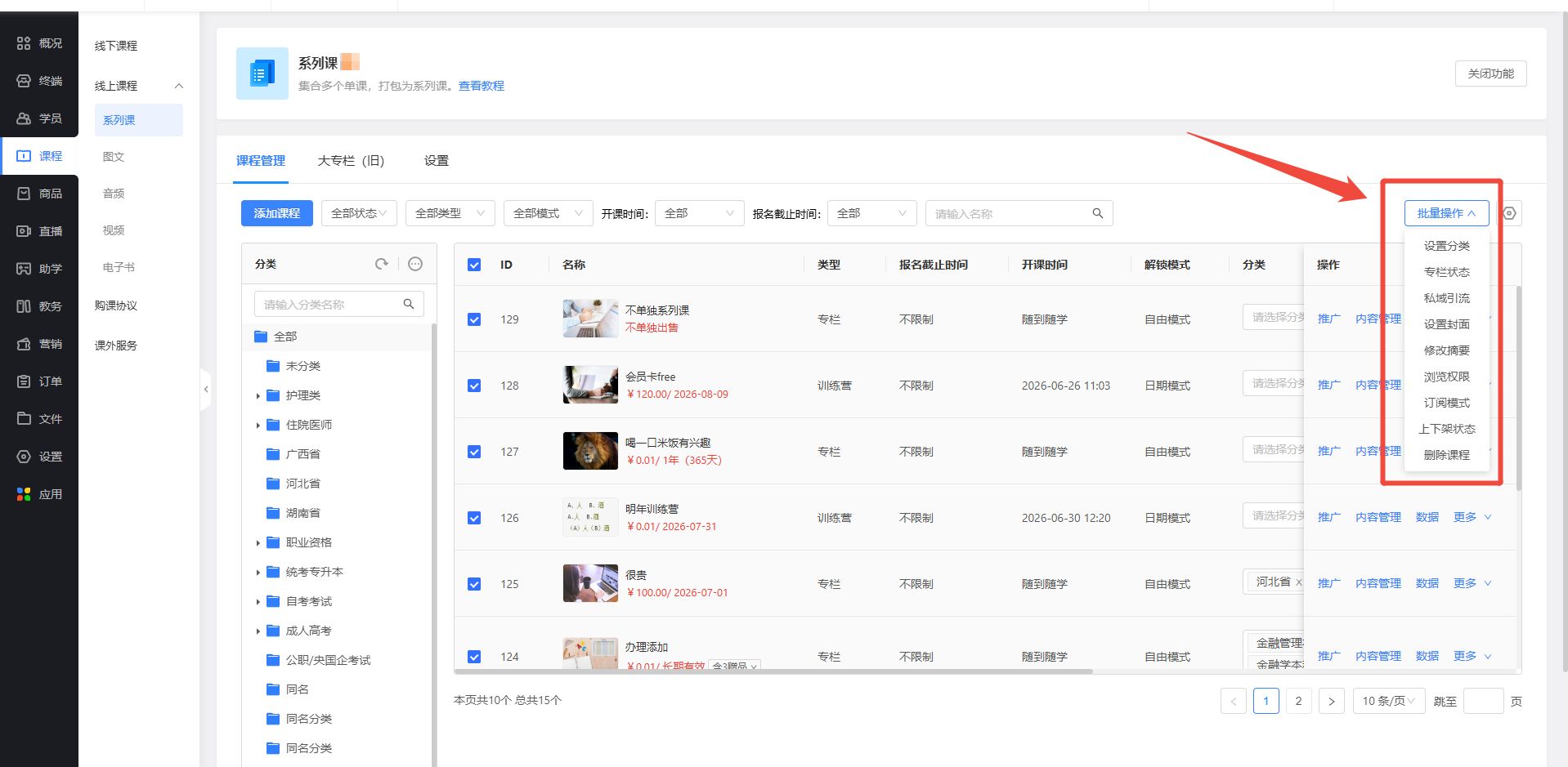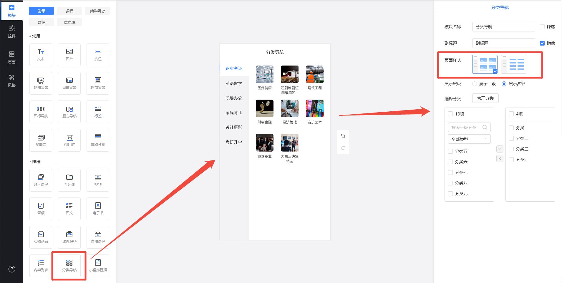 支持分类导航模块,丰富学员端分类展示效果