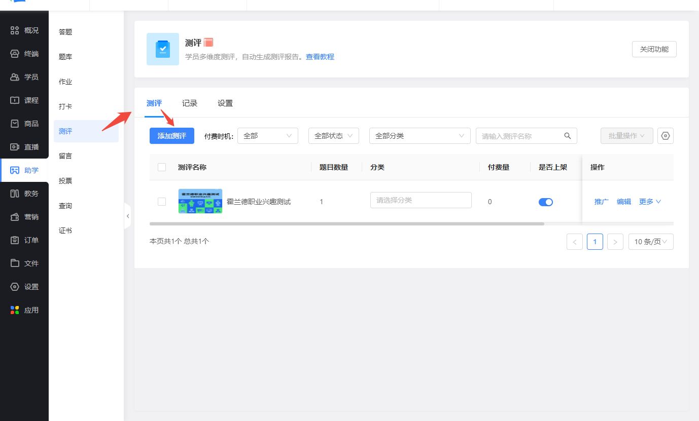 一、【测评】新增测评功能