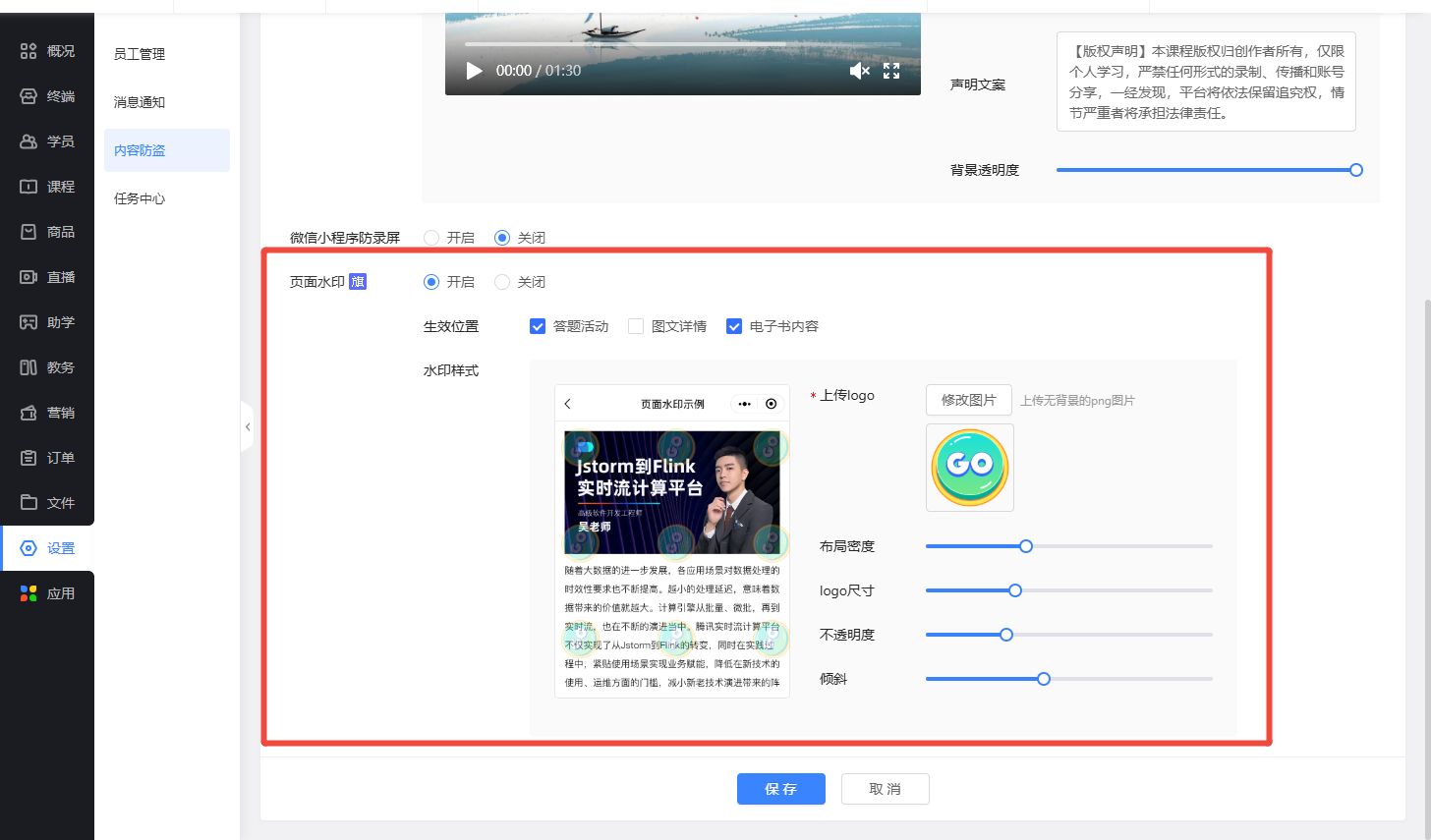 【k8凯发官网入口的版权保护】学员端页面支持水印