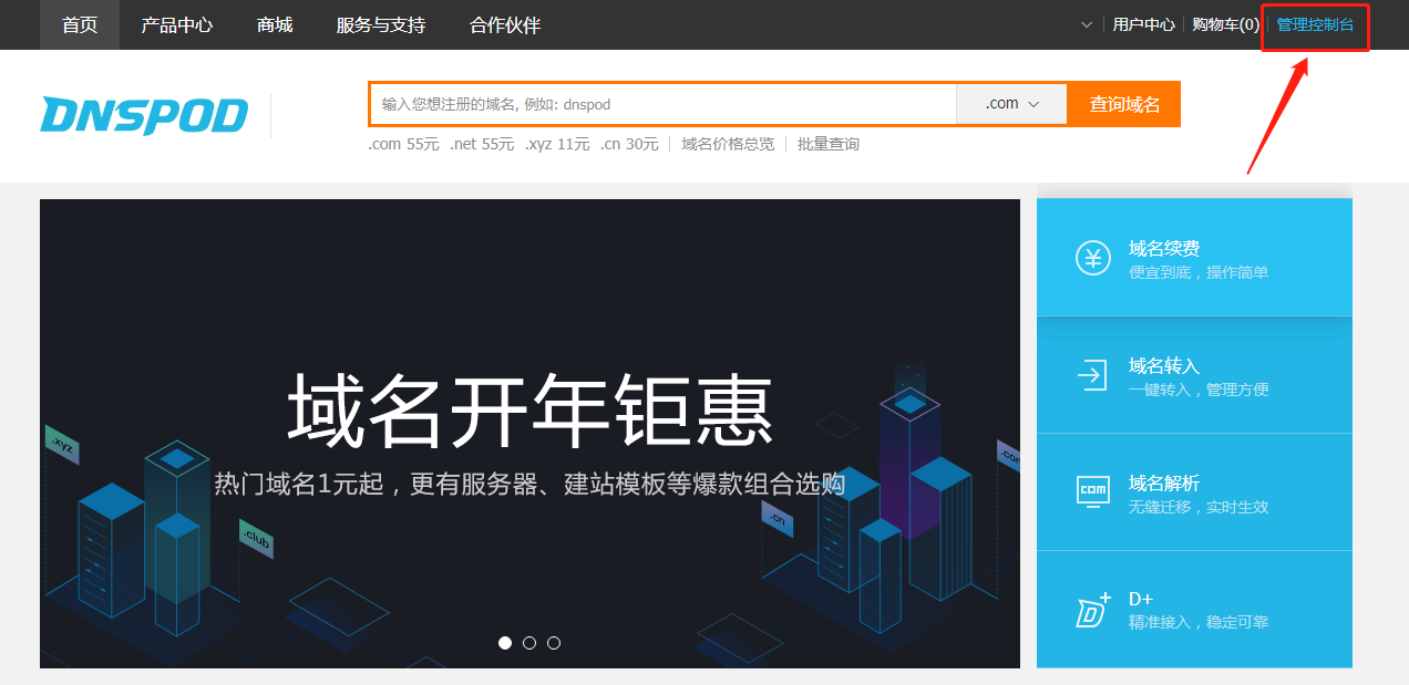 本教程将会列举几个常见的域名平台,指引大家如何在对应的域名平台找到操作域名解析的地方。