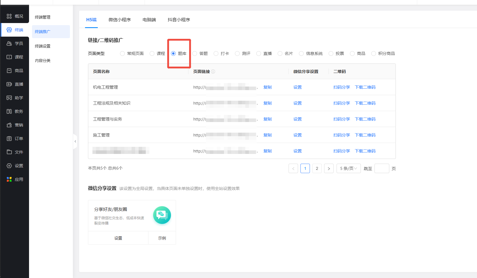 通过题库列表模块、题库列表页、链接控件等方式,可以在学员端设置题库的访问入口
