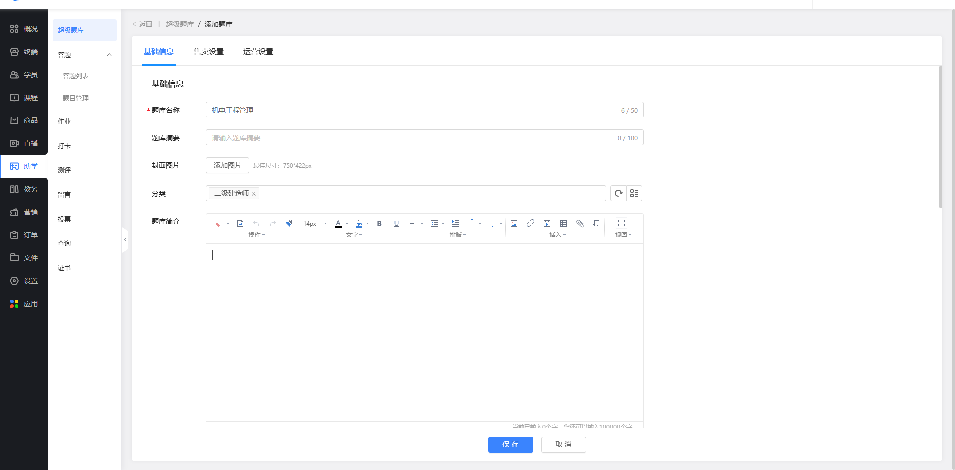支持三层题库分类,实现考试分类示例:职业资格>建筑工程>二级建造师