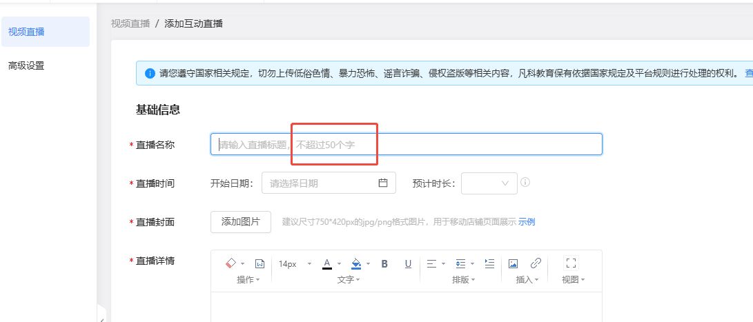 六、【直播】直播标题字数限制提升至50