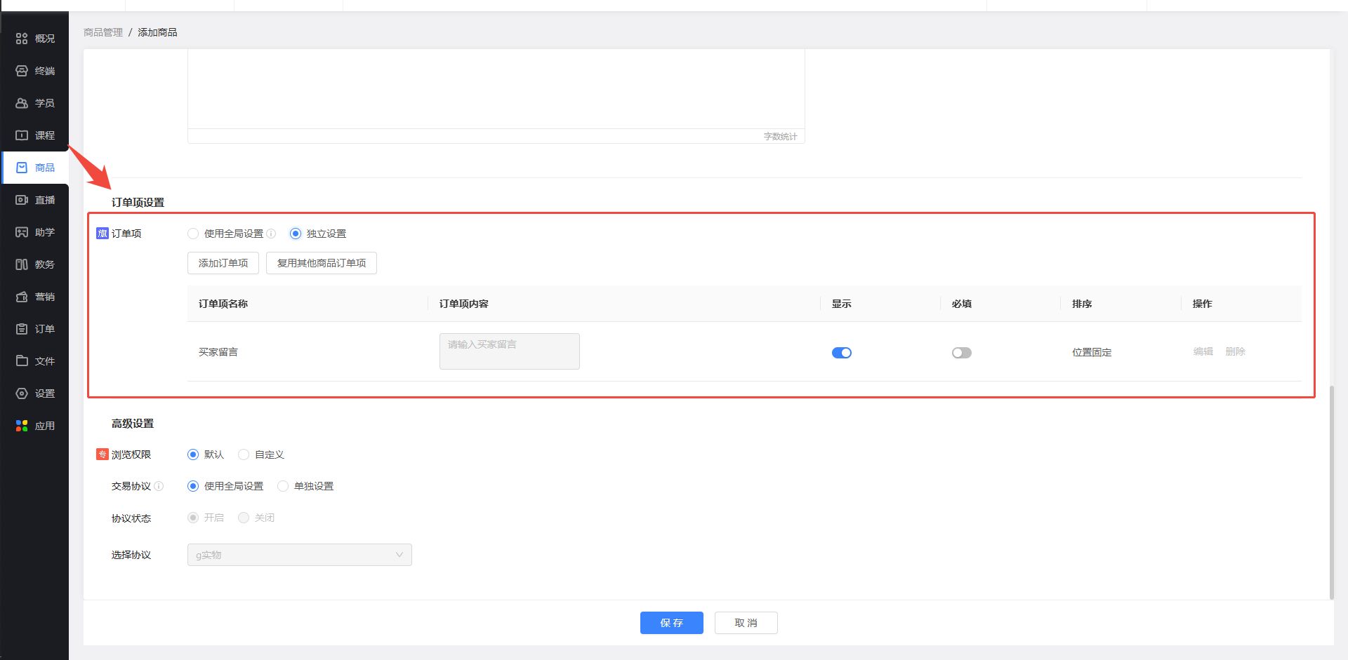 二、【综合】订单项支持独立设置