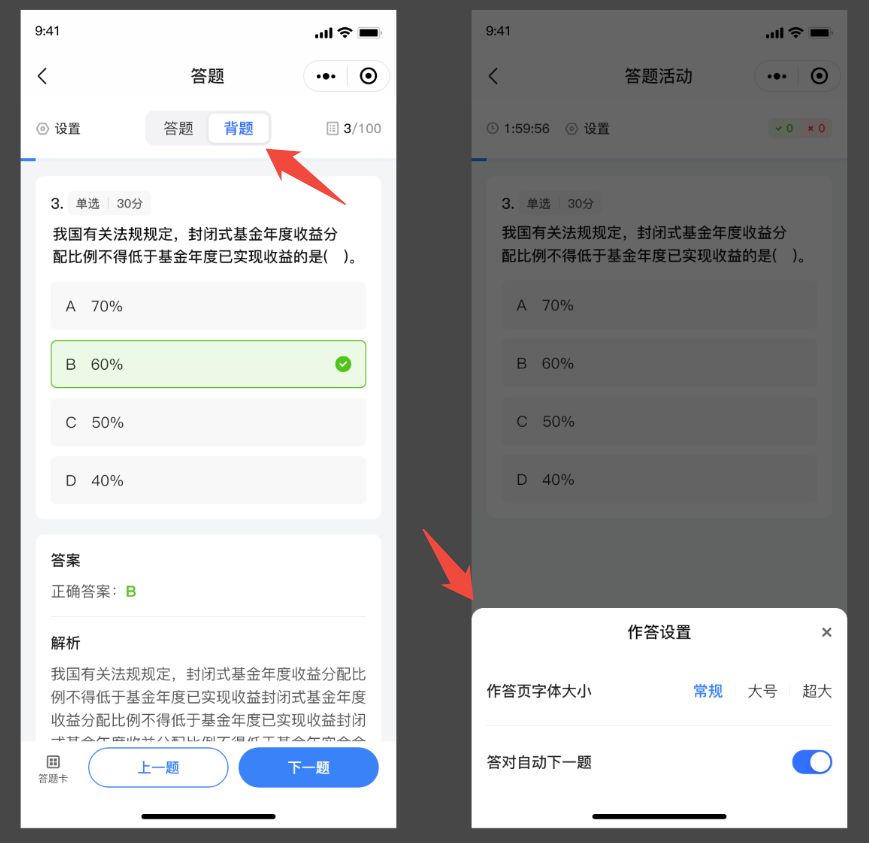 三、【超级题库】支持背题模式、作答支持自动下一题