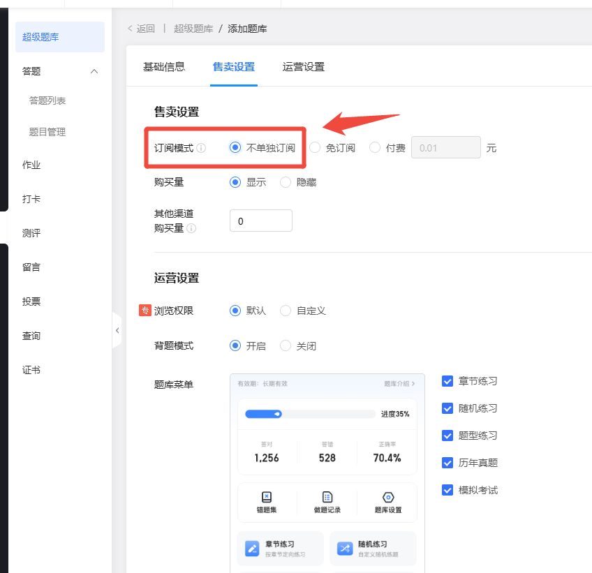 完善超级题库售卖方式