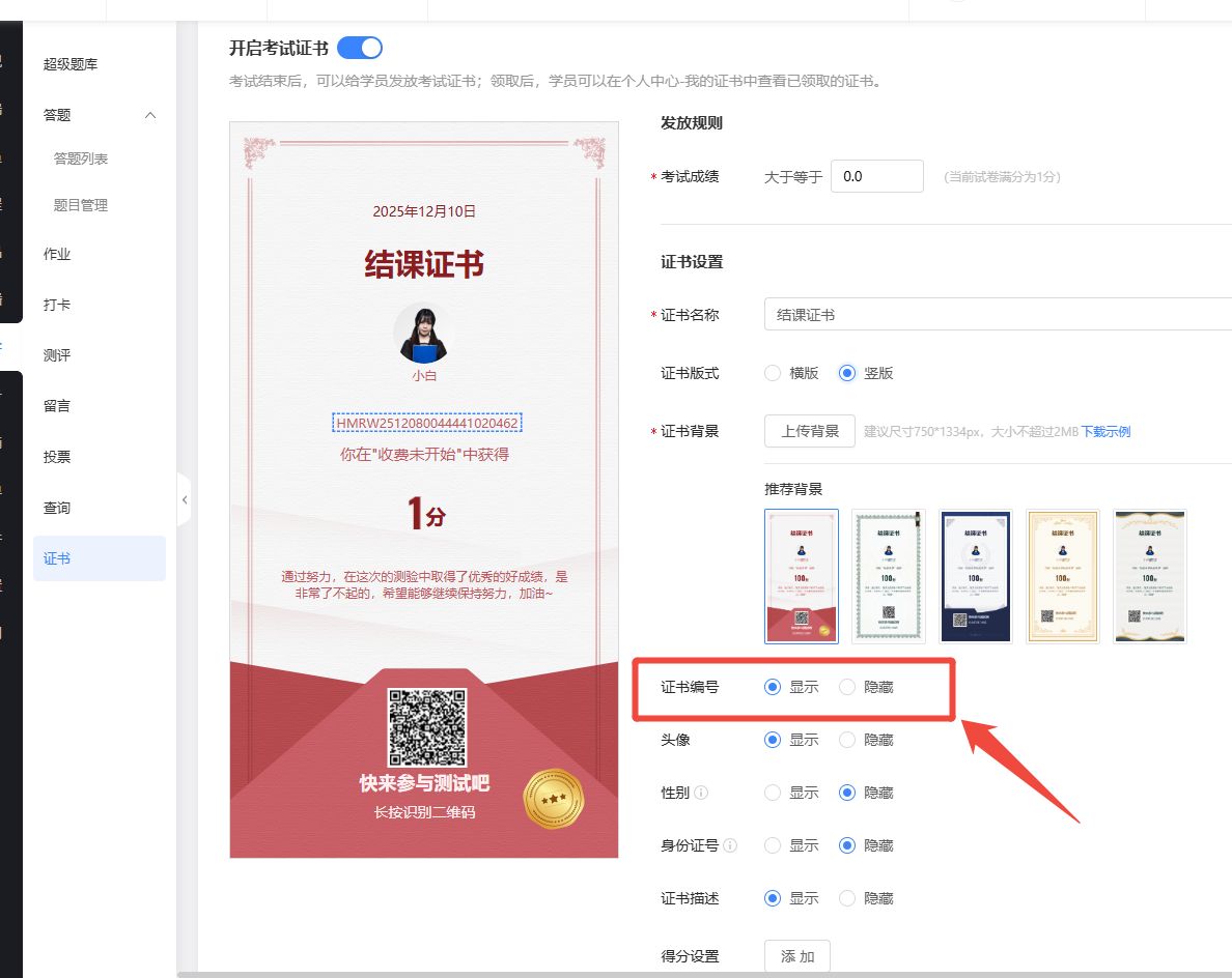 【证书】支持显示证书编号