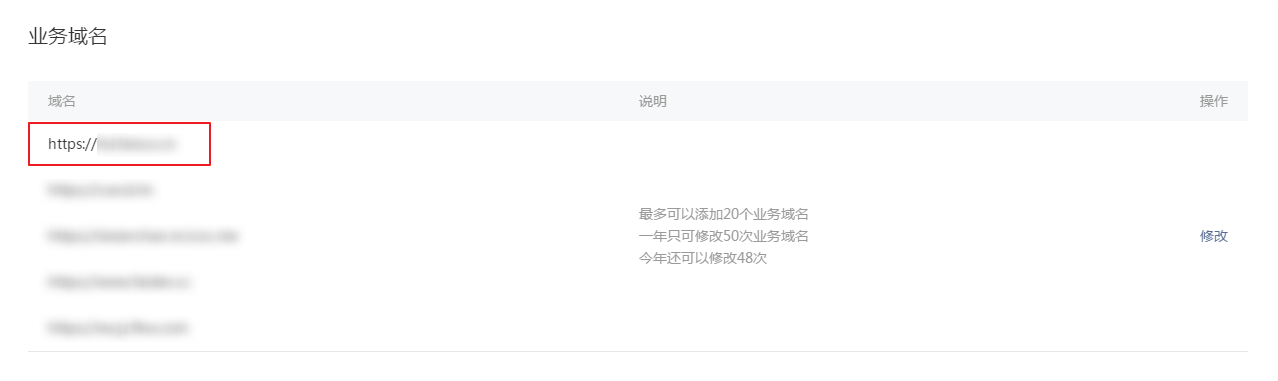 3. 仅支持在微信公众平台注册的企业主体小程序配置业务域名。