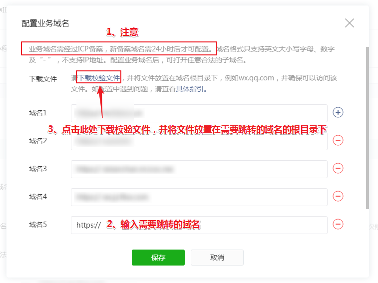 输入需要跳转的域名,然后点击下载校验文件,并将文件放置在需要跳转的域名的根目录下。一共三个步骤,缺一不可。