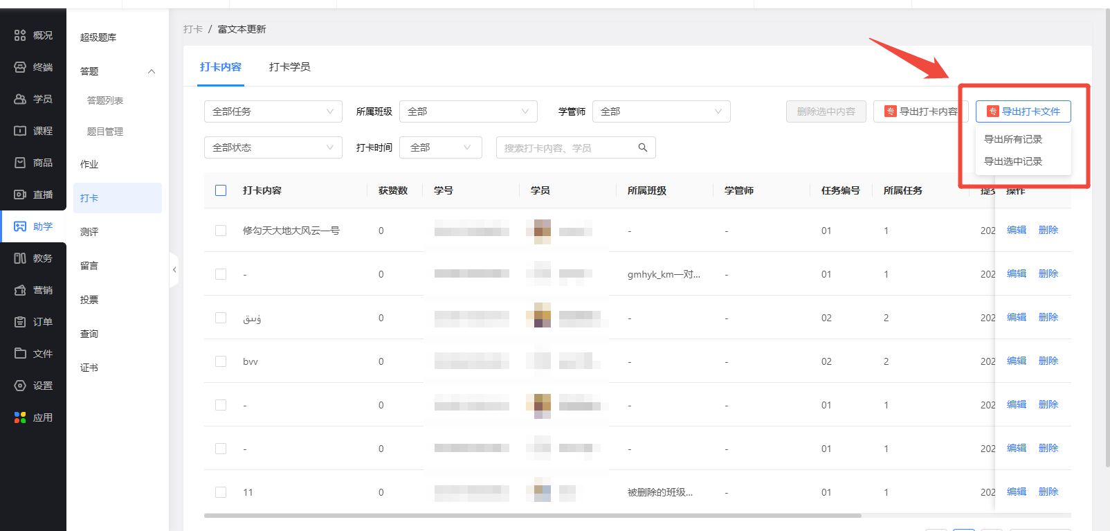 导出学员打卡时上传的打卡文件
