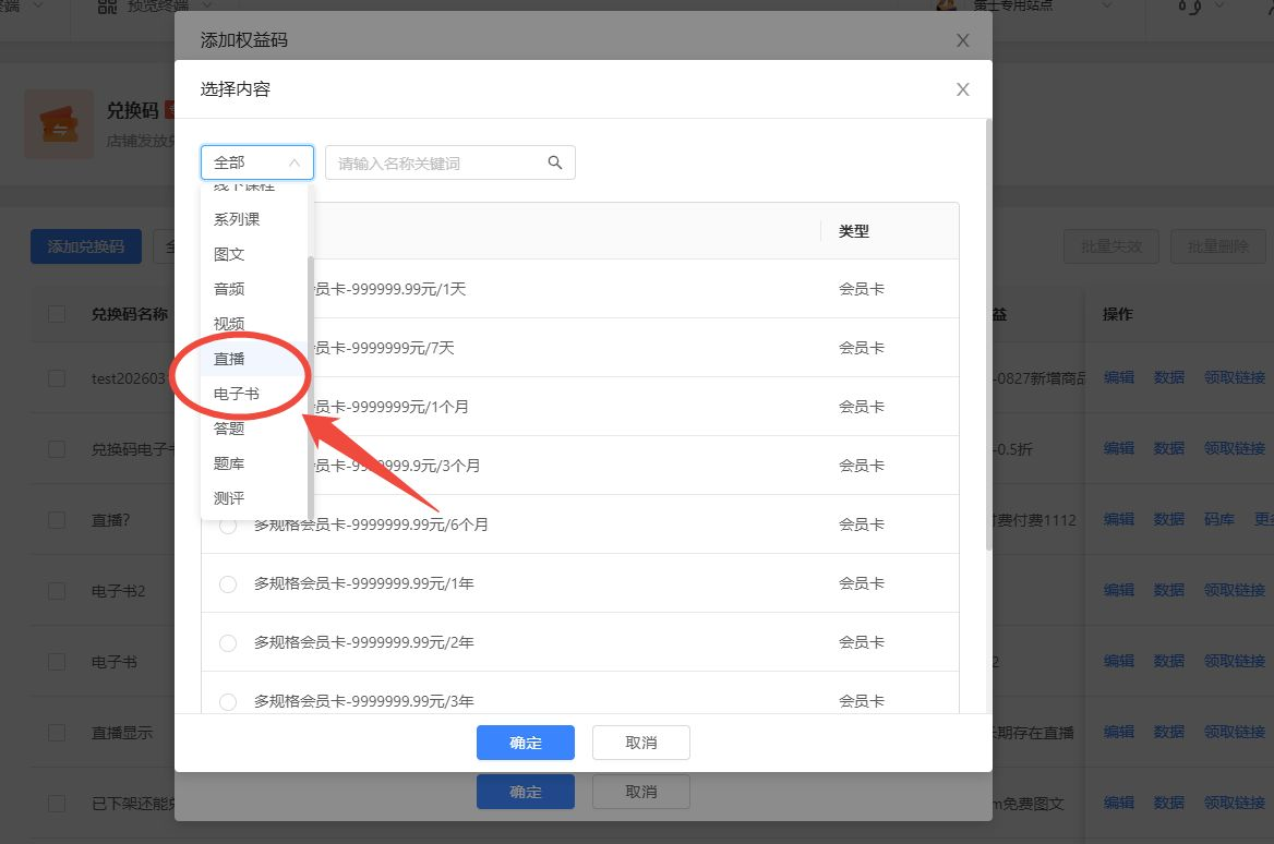 二、【兑换码】兑换码支持直播和电子书
