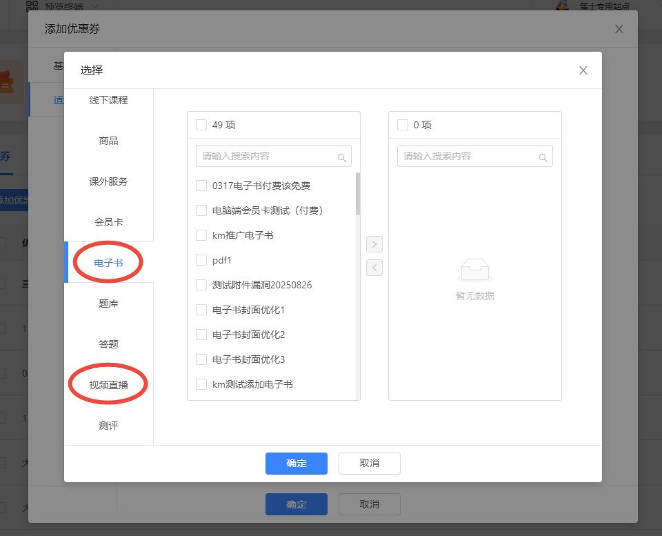 【优惠券】优惠券支持直播和电子书