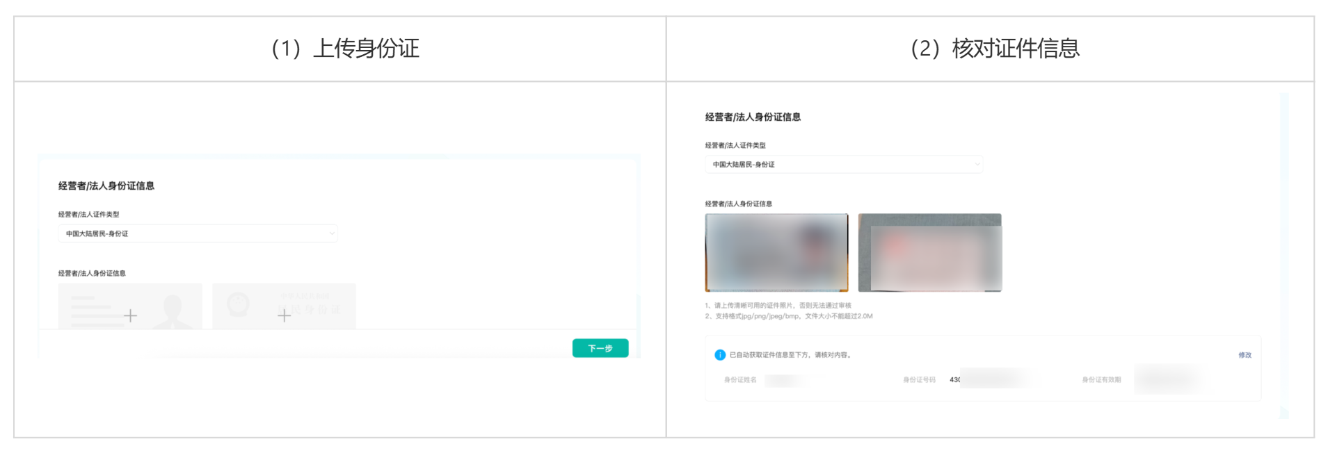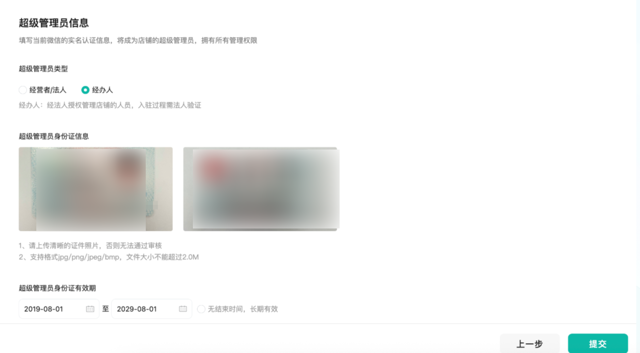 4. 填写经营者/法定代表人身份证信息