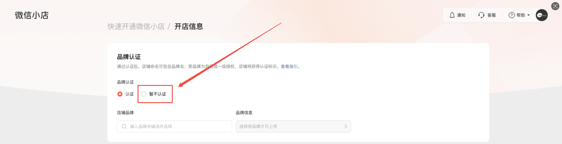 9. 品牌认证,建议选择跳过或“暂不认证”
