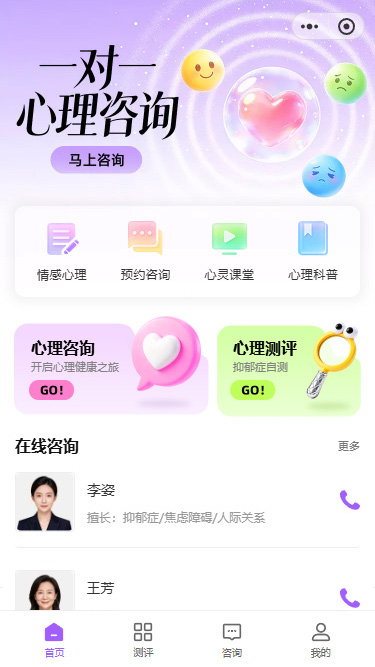 一对一情感心理小程序模板